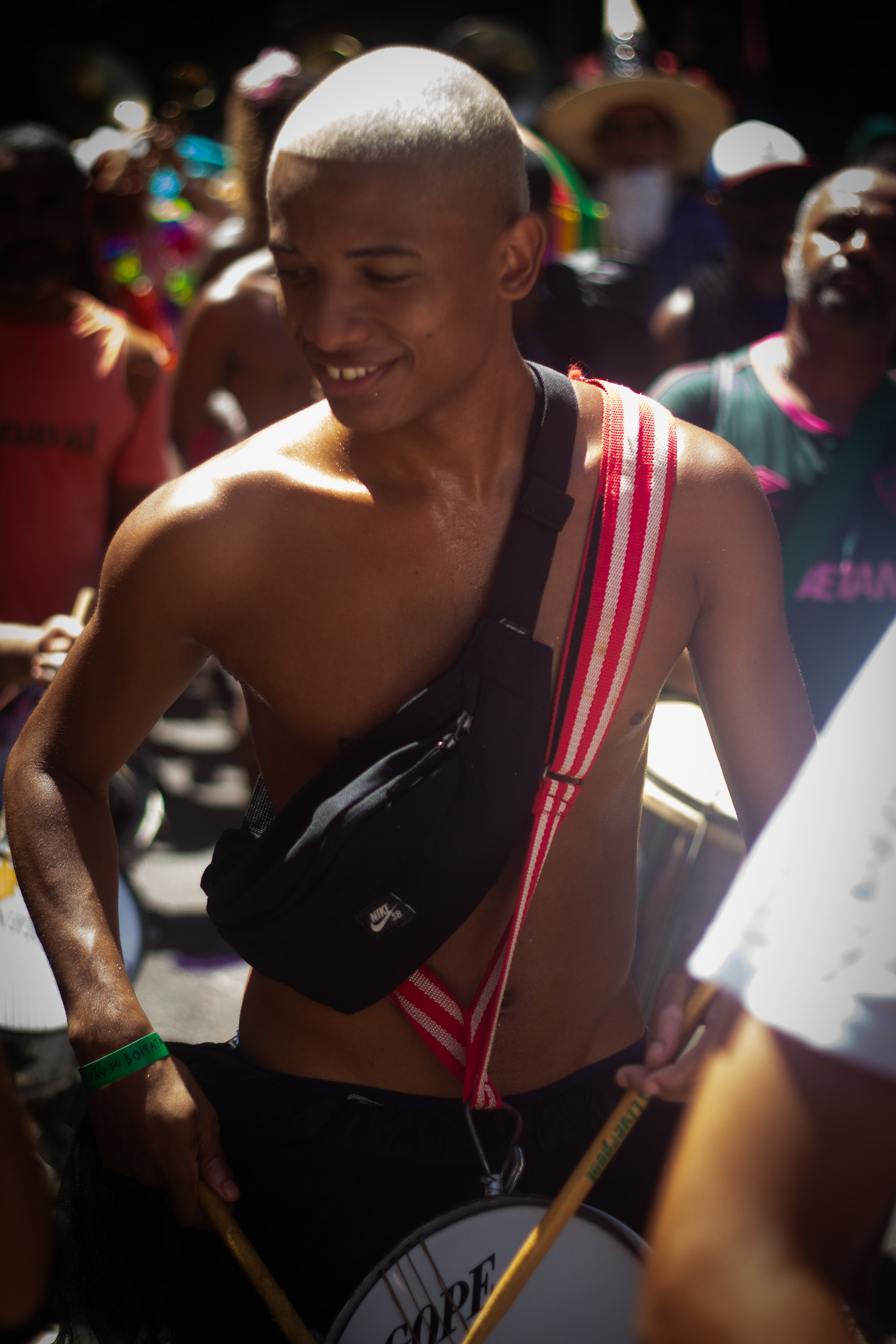 A intenção de ser realizado por dois olhares tem como premissa a cooperação, mas sem negar a contraposição de fotógrafos com origens distintas, que há anos fazem parte do ecossistema do carnaval como trabalhadores da comunicação. Ambos se encontraram, por suas particularidades, no olhar para aquelas pessoas que compõem a manifestação no centro da cidade também como trabalhadoras. Porém, como sempre estavam na folia com pauta definida, sem que isso fosse exatamente o objetivo inicial do briefing, o olhar sobre o incômodo acabava sempre ficando de soslaio, incompleto e parcial. Mais um suspiro que uma comprovação.
